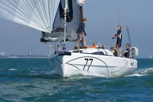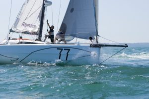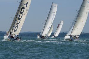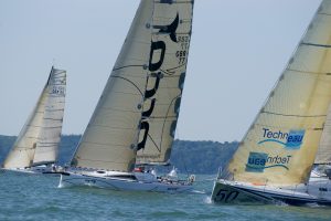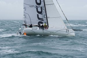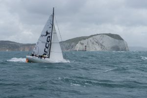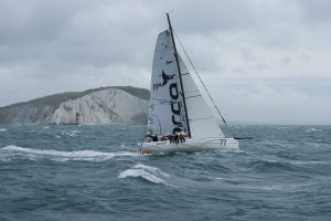 15 Class 40s stayed on after the Fastnet for the class world championship. These boats are great fun to race around the cans, with the additional tactical challenge (and opportunity) of managing water ballast. Andrew Hurst joined us as tactician and second helm, and in this role displayed admirable sang froid when the starboard tiller came away from the rudder stock in big overfalls while Orca was under kite in a Force 6 off the south side of the Island.
